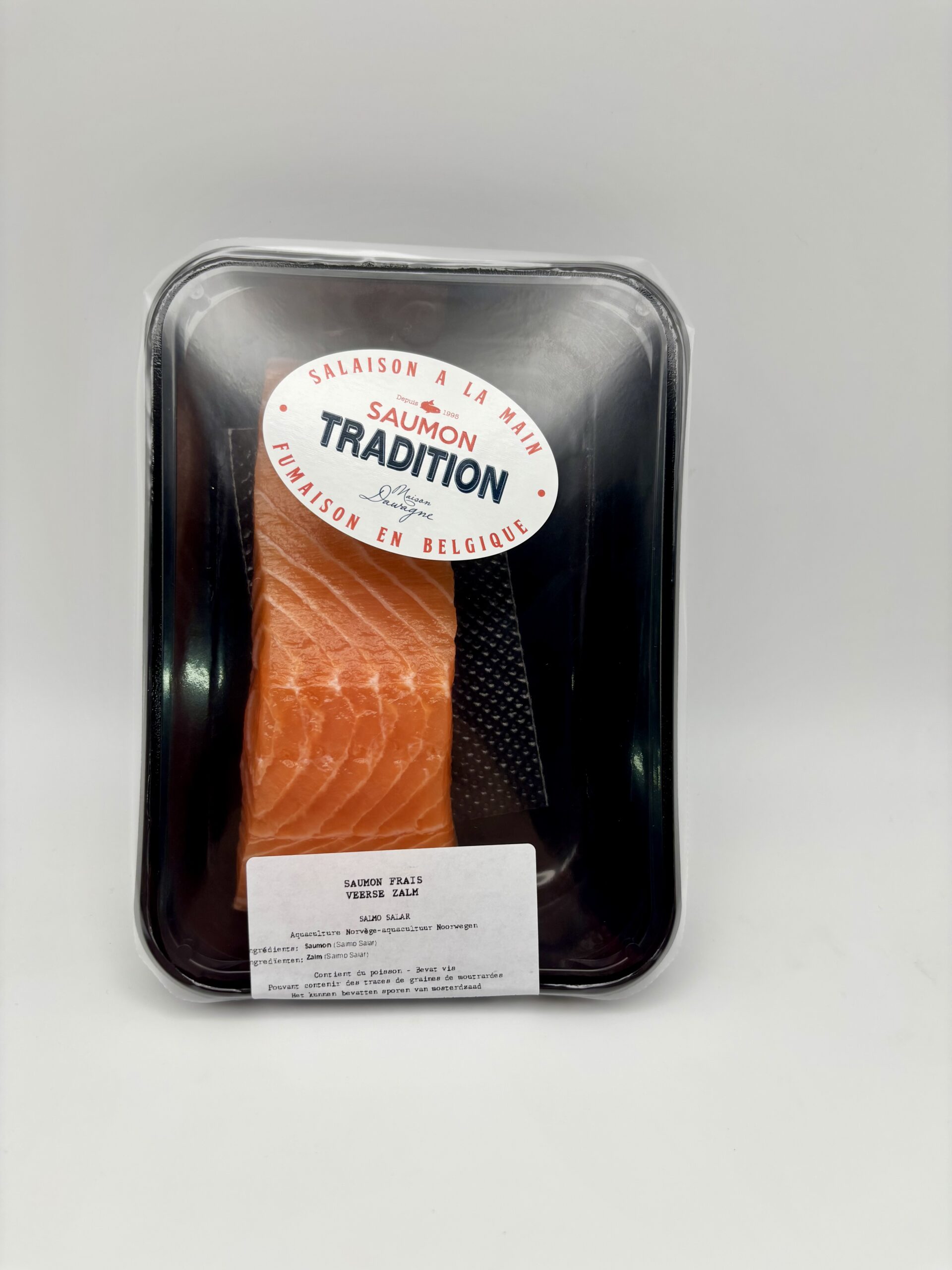 Pavé de Saumon Frais (+/- 200g)5,90€ quantité de Pavé de Saumon Frais (+/- 200g) Ajouter au panier Catégorie : Saumon Description Morceau découpé dans le filet du saumon, sans arêtes apparentes et avec la peau sur une coté pour préserver la saveur et la tenue à la cuisson. Prix : 29,50€/kg Produits apparentés Saumon Fumé Bio (250g) 12,50€ Ajouter au panier Pavé de Saumon Bellevue (+/- 200gr) 8,50€ Ajouter au panier Cœur de Saumon fumé à l’aneth (+/- 200gr) 12,90€ Ajouter au panier Terrine de Saumon 7,50€ Ajouter au panier
